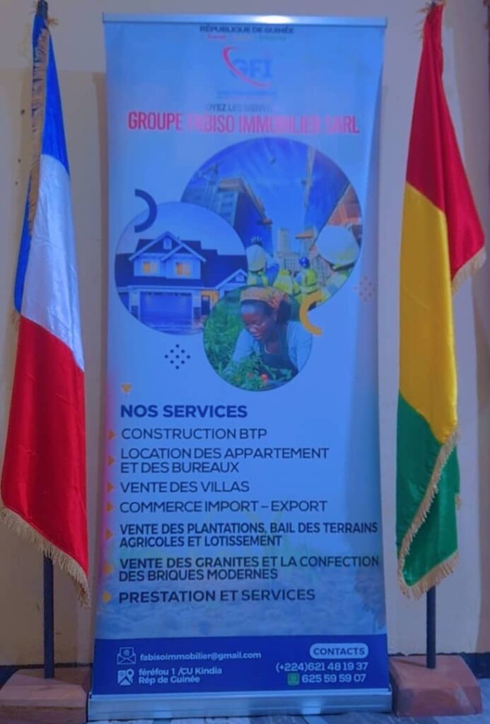 Groupe Fabiso Immobilier SARLU est une entreprise anonyme Guinéenne au capital social de GNF 5,000,000,000 (Cinq Milliards) inscrite au registre de commerce et du crédit mobilier sous N°RCCM/GN.TCC2024.B.11405; ayant son siège social : Ferefou, Commune Urbaine de Kindia, République de Guinée.